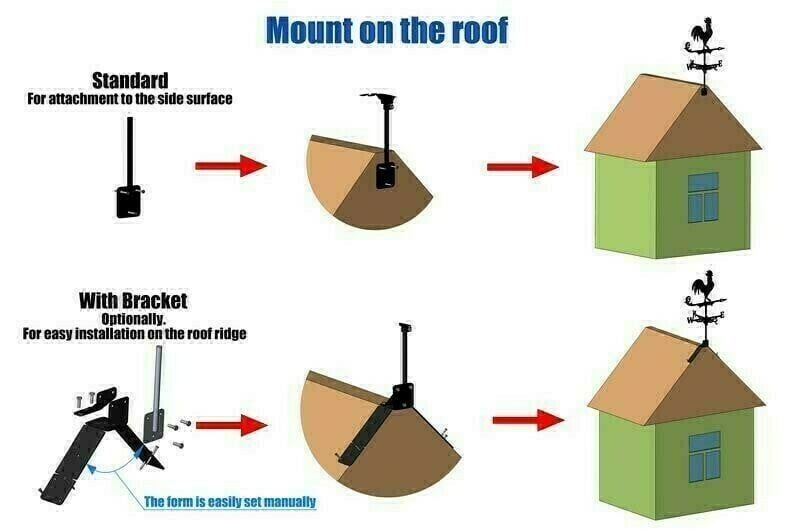 Each weathervane has a special roof mount.Ā This size weathervane is ideal for yourĀ home, garage, cupola, barn,Ā lawn, patio, garden, backyard,Ā or gazebo.